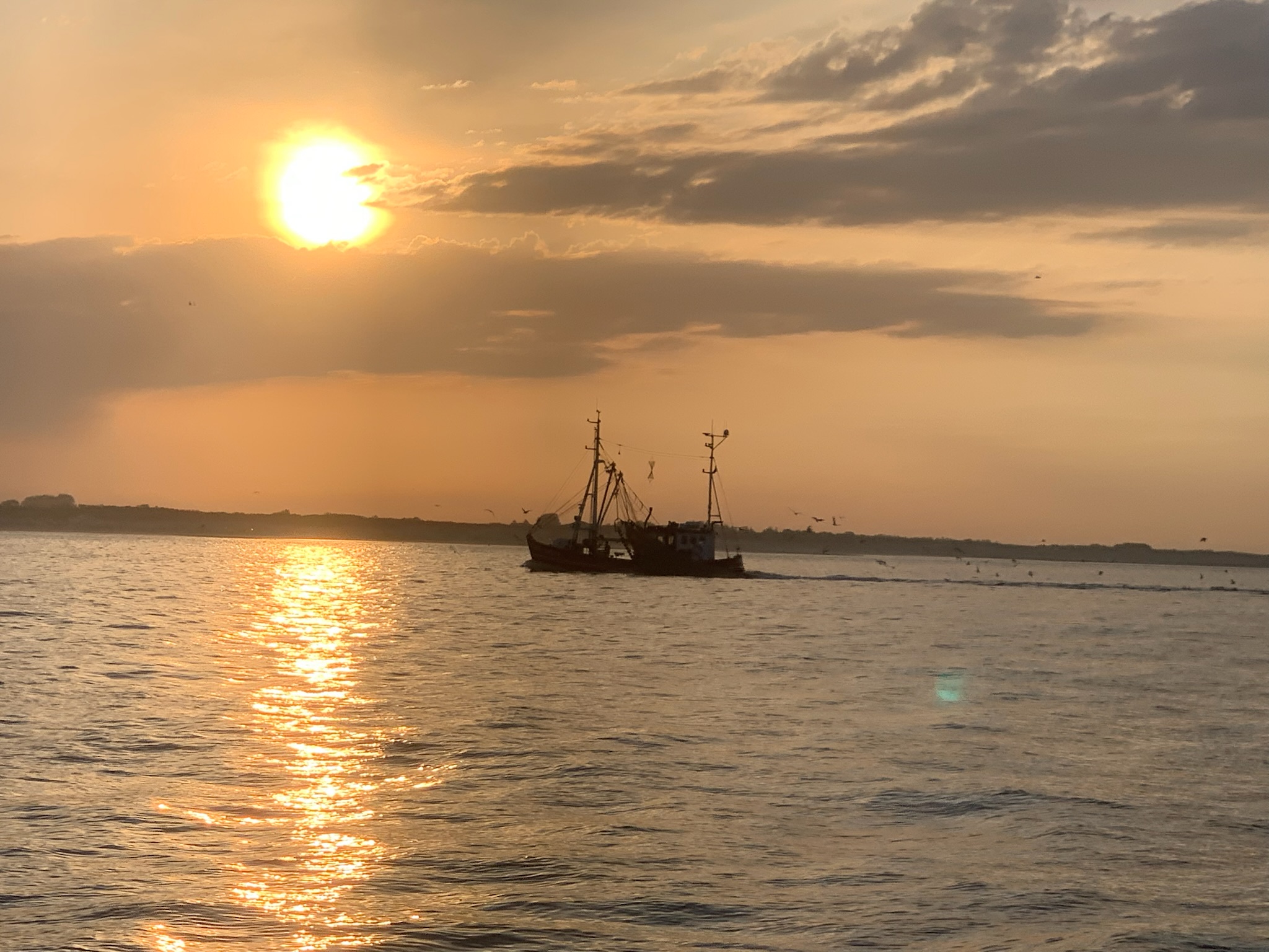 Am Mittwoch sind in Borkum zwei Kutter eingelaufen, einer davon wäre gesunken, wenn die Niederländische Küstenwache ihn nicht rechtzeitig leer gepumpt hätte um das Leck zu finden, der andere hatte Krabben dabei und Joeline hat für einen Zehner ein ganze Teigschüssel voll erstanden – mit Krabben kann man die Nachbarn im ‚Päckchen‘ erfreuen und mit Krabben pulen kann man sich prima die Zeit auf dem Boot vertreiben: