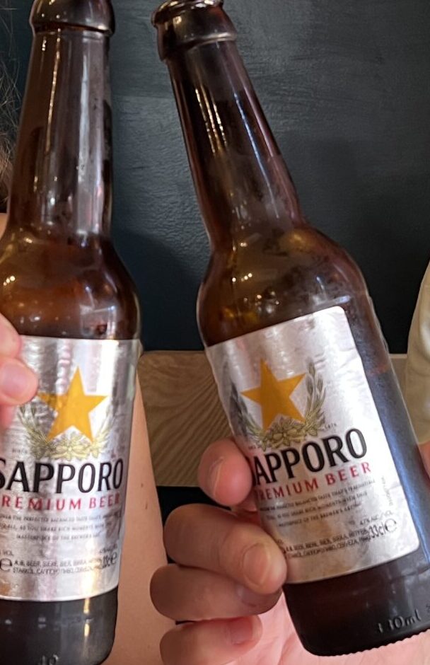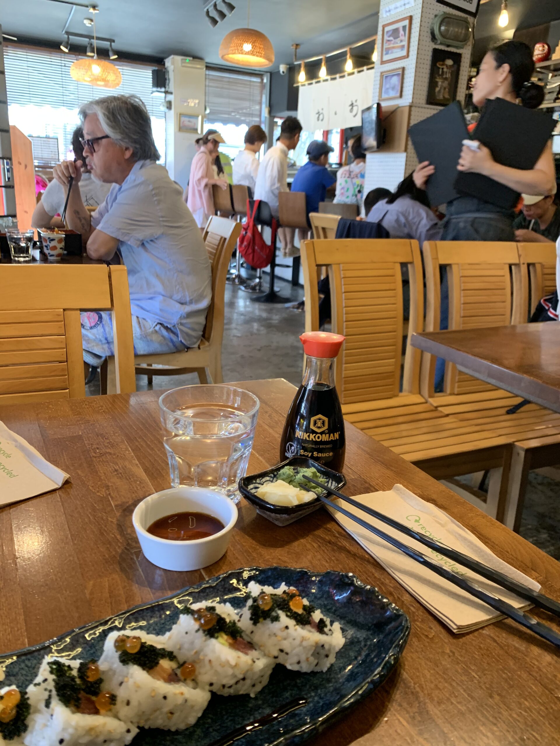 Auf dem Weg zum Bahnhof haben wir einen Japaner gefunden, der sehr einladend war: geschmackvoll eingerichtet, sauber und innen gab es außer uns ausschließlich asiatischen Gäste – ein Glücksgriff.