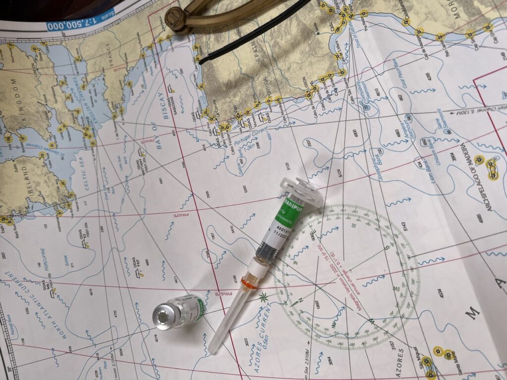 Wir haben uns heute an Bord die 3. Impfung gegen Tollwut gegeben (die ersten beiden haben wir in Neustadt erhalten). Steffi, als ‘Medizin an Bord‘ geschulte Person, hat das souverän gemeistert – ich durfte dann Steffi ihre Spritze geben. Jetzt können wir den Kühlschrank auch mal länger auslassen – ohne zu riskieren, dass der Impstoff schlecht wird 🙂
