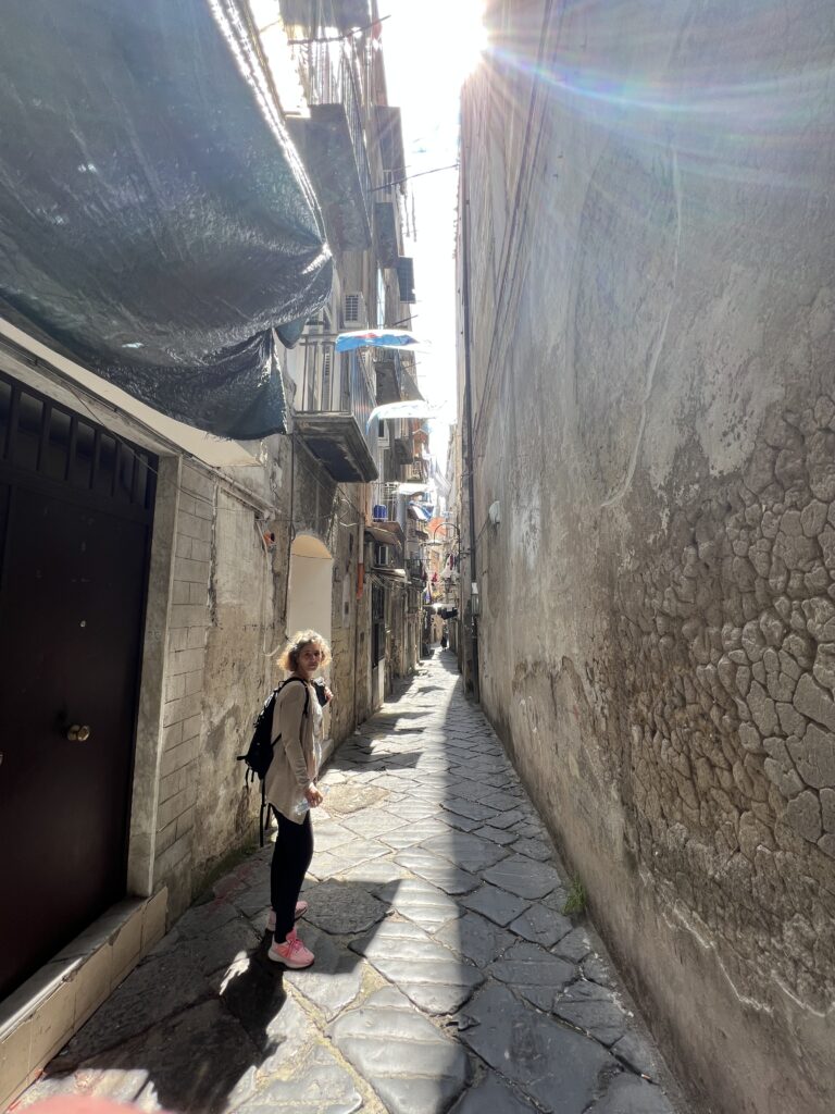 Wir haben eine Tour ‚Underground Naples‘ gemacht: die Griechen ließen von Sklaven die Steine aus dem Untergrund brechen, um sie als Baumaterial zu verwenden. Die Römer bauten das unterirdische System zu einem Aquädukt aus (ca. 400 km grosses System unter der Erde), das bis zum Ausbruch der Cholera 18xx zur Wasserversorgung mit unterirdischen Zisternen genutzt wurde. Im zweiten Weltkrieg wurde das System als Luftschutzbunker reaktiviert und ausgebaut.