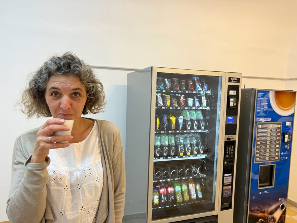Wir sind heute morgen mit dem Zug reingefahren, die Bahn ist krachneu (EU Projekt) aber auf dem Bahnsteig fehlt noch der Ticketautomat. Wir konnten beim Schaffner zahlen.