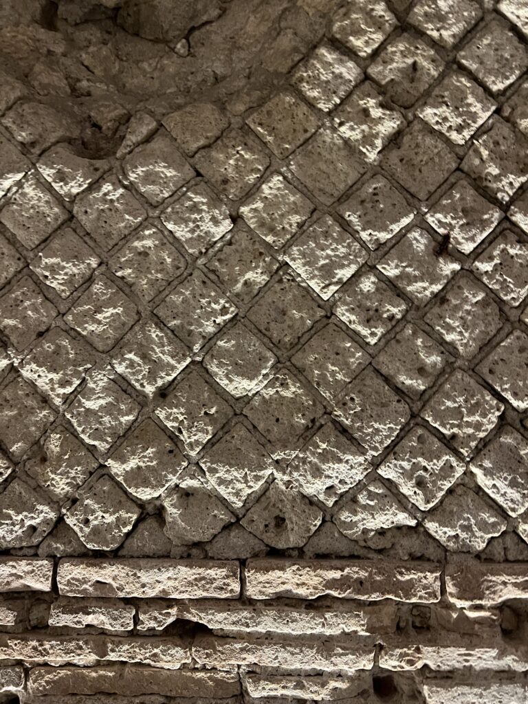 Danach konnten wir noch sehen, wie Gebäude der Altstadt mit historischen Bauten, einem Amphitheather (Nero soll im 1 JH nach Christus hier öfter aufgetreten sein), verknüpft ist. Im Keller sind noch die alten Gänge, die mit einer Erdbeben-geeigneten Wabenstruktur gebaut wurden – auf diesen Fundamenten wurden die Wohnhäuser in der Altstadt errichtet: