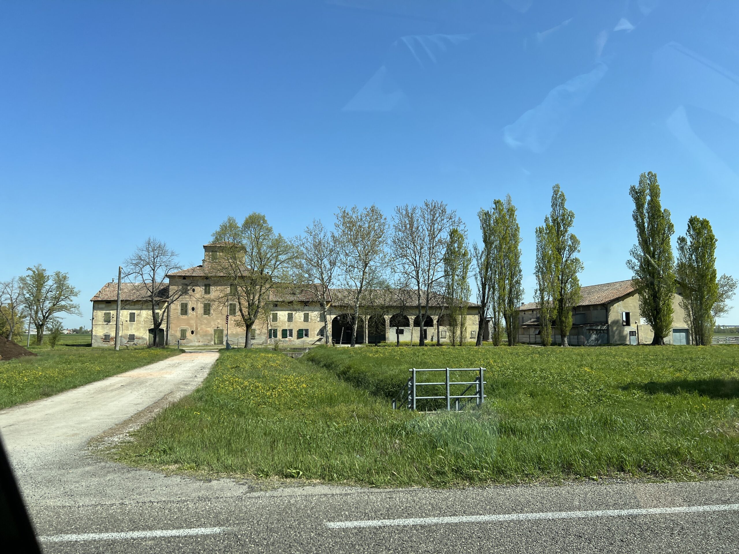 da man in der Poebene keine Berge sieht, und die Landschaft mehr oder weniger gleich ist, und man von einem Kreisel zum anderen, an den nächsten Gebäudeansammlungen vorbei fährt, kann ich mich nur an der Sonne orientieren, um die ‚grobe Richtung‘ einschätzen zu können – man glaubt aber, dass Navi schickt einen auf Umwegen zum Ziel.