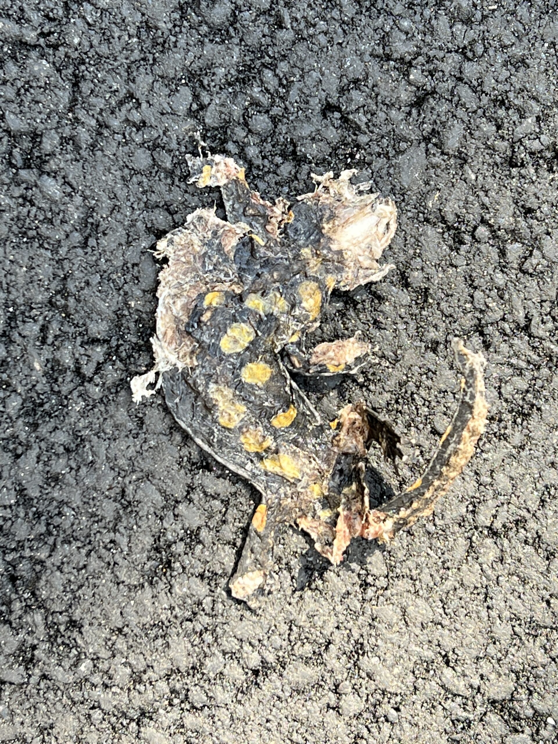 Am Berghang gibt es eine Menge Echsen, manche beenden ihr Leben ziemlich platt auf der Straße 😉